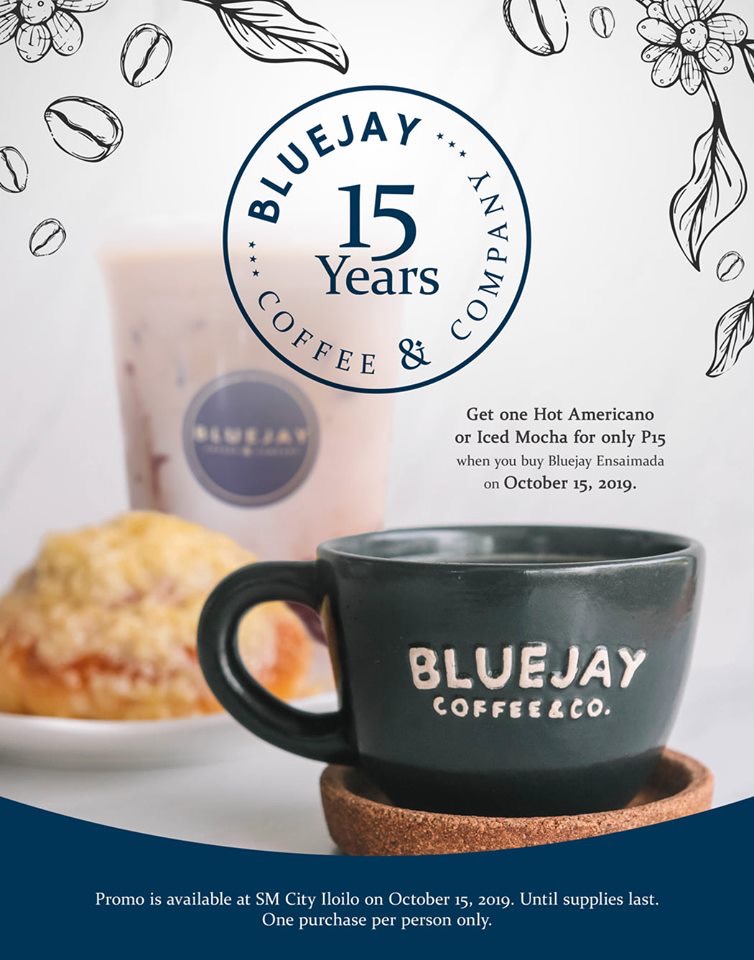 - On October 15, get one Hot Americano or Iced Mocha for only P15 when you buy Bluejay Ensaimada at SM City Iloilo